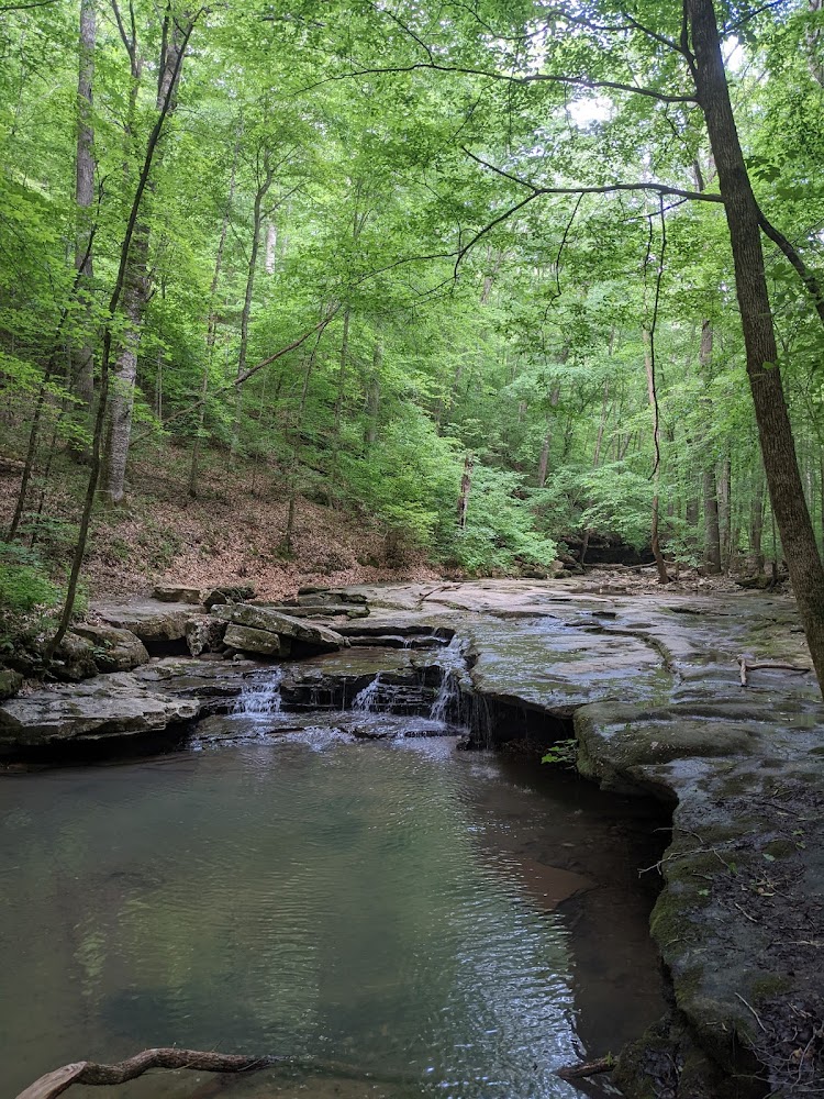 Trail isn't marked, followed the creek about .75 mile in and didn't see it but we had kids that had fun playing in the creek along the way.