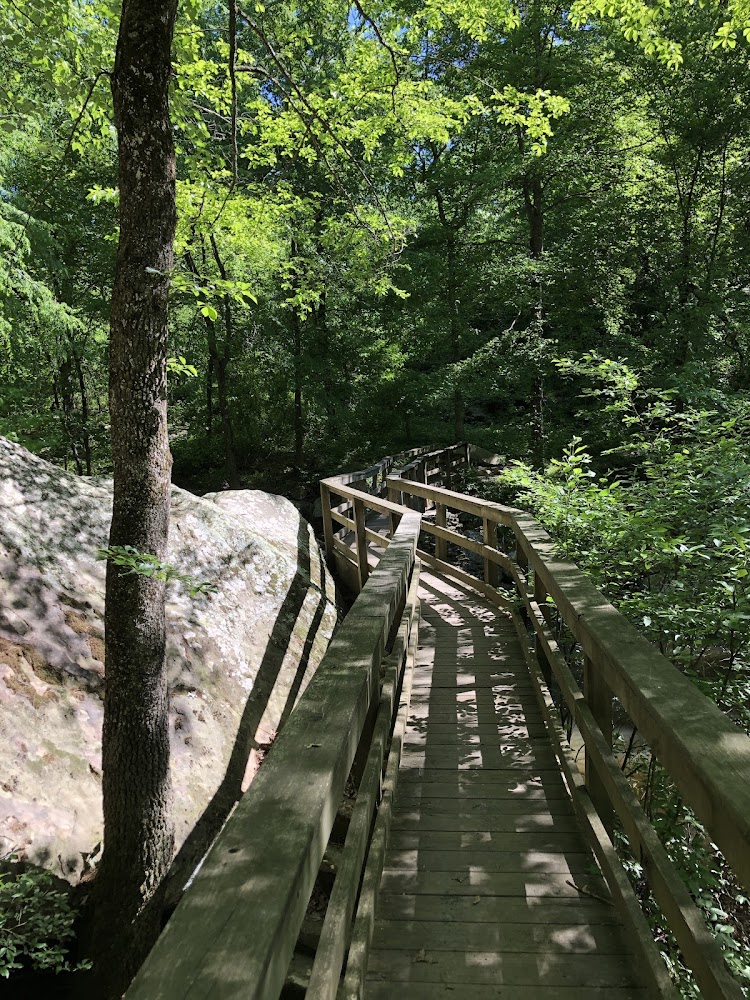 The Petit Jean State Park Cedar Creek Trail in Morrilton, Arkansas, boasts some of the most unique rock formations, beautiful scenery, and stunning overlooks you will ever see. There are a few issues you may encounter, however, like rocky terrain, downed trees, and a bridge that has been washed out. Navigating the stream is particularly easy where the bridge is out this time of the year. In fact, the creek is so low right now that it can be crossed without getting wet. Also, August tends to be one of the hottest months in AR...so bring plenty of water!