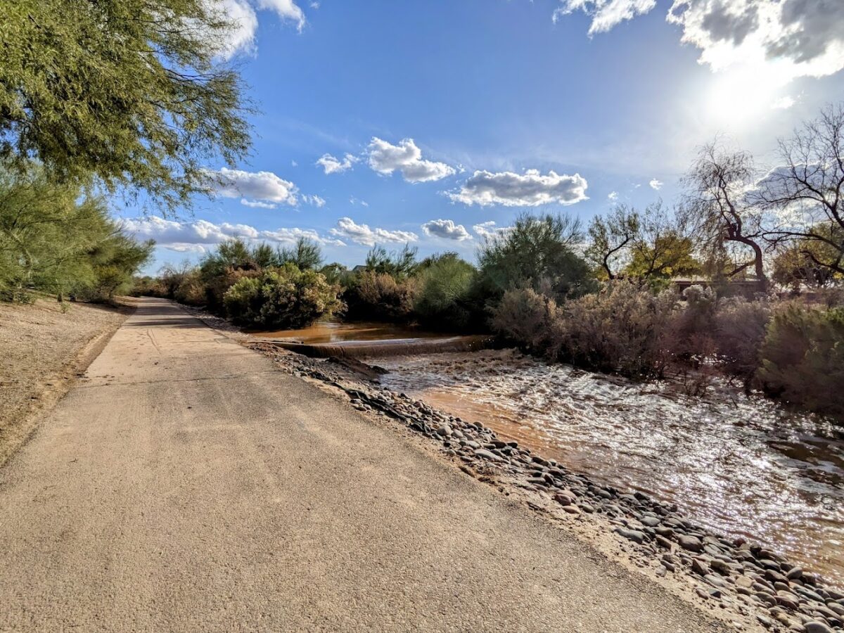 The trail is family-friendly and features tunnels under roads and a playground area, making it a versatile destination for all ages. Visitors appreciate the lush trees and natural beauty that provide a refreshing contrast to the desert surroundings. The trail’s gentle terrain and scenic environment make it perfect for leisurely walks or more dedicated hikes.